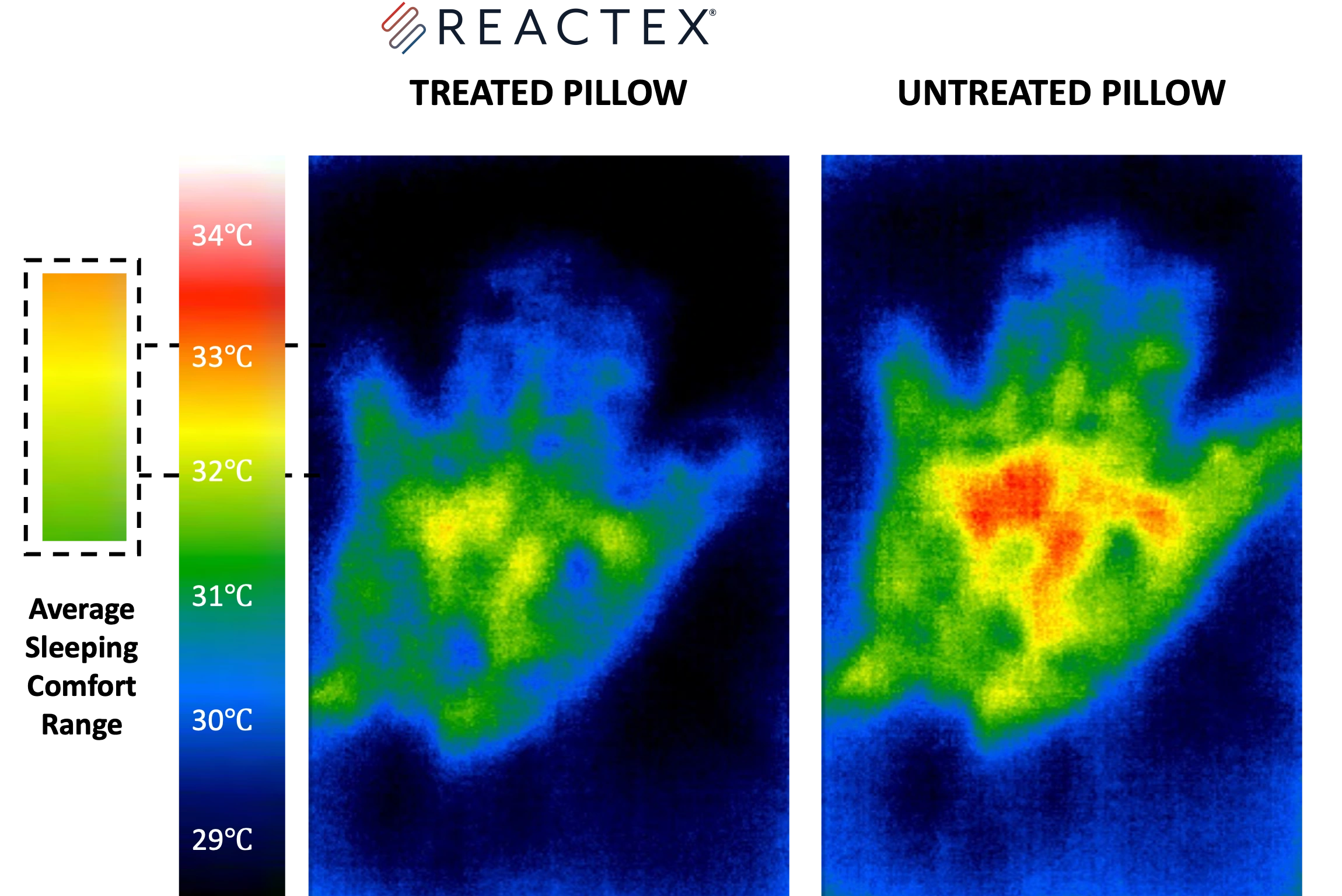 Rest on a Reactex® mattress and/or lay your head on a Reactex® pillow and experience the continuous cooling, even after 8 seconds when the cooling effect of traditional products usually starts to wear off.