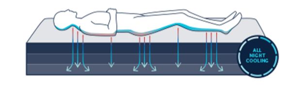 Reactex® is the next generation climate control and a pressure activated gradient system that continuously controls the transfer of energy (heat) away from your body into continuous comfort and all day and night cooling, which will recharge you and support deeper sleep.